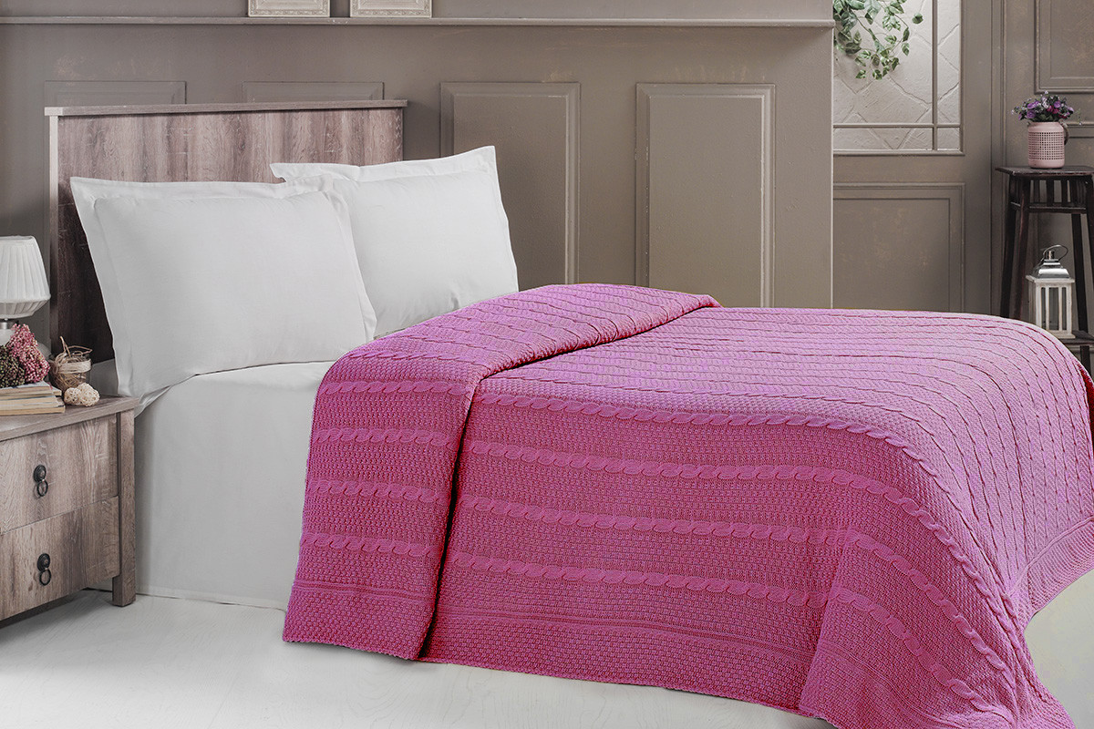 Вязаные изделия способны растягиваться во всех направлениях, при этом с лёгкостью принимая изначальную форму. Вязанные изделия могут быть выполнены из различных материалов: шерсти, бамбука, хлопка и даже синтетики. Вязаные пледы и покрывала могут иметь различные узоры и способы вязания. Вязаный плед можно использовать, как покрывало на кровать (диван) или же как накидку на кресло. Также в вязаное покрывало можно закутаться прохладным вечером, ведь вязаные изделия мягкие и приятные на ощупь. Покупая одно изделие Вы получаете декоративное покрывало, стильную накидку и уютный плед одновременно.