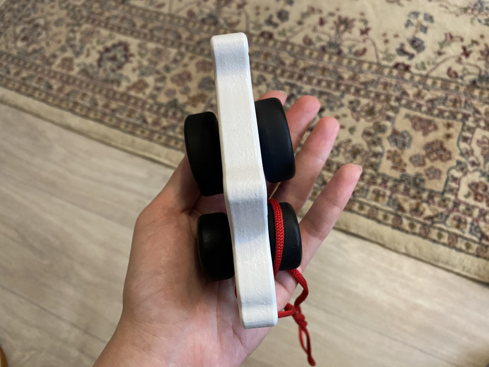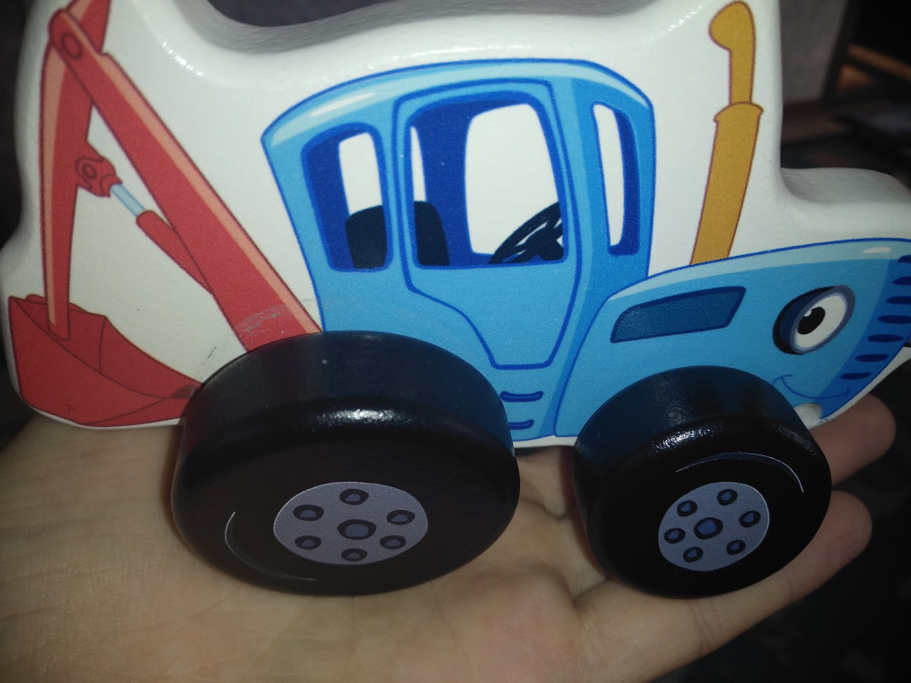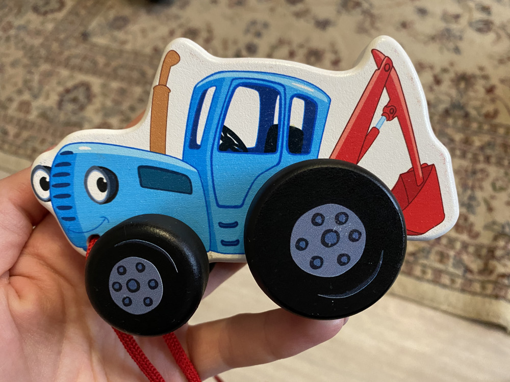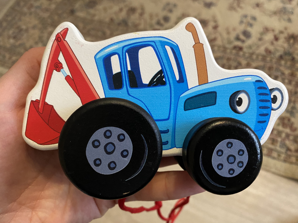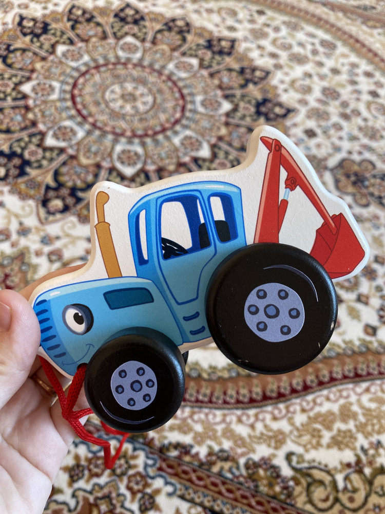 Хороший маленький трактор, с красным шнурком. Как писали ранее очень вонючий, снимаю звезду за запах. Детские игрушки так не должны пахнуть.