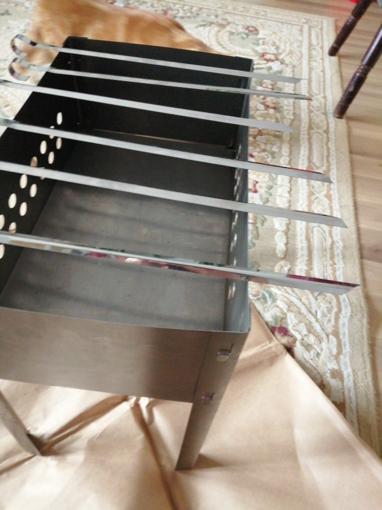 Размер мангала прекрасный. Много места не занимает. Приготовить шашлычки (мясо, овощи, курочка, рыба) на шпажках просто идеально. Спасибо