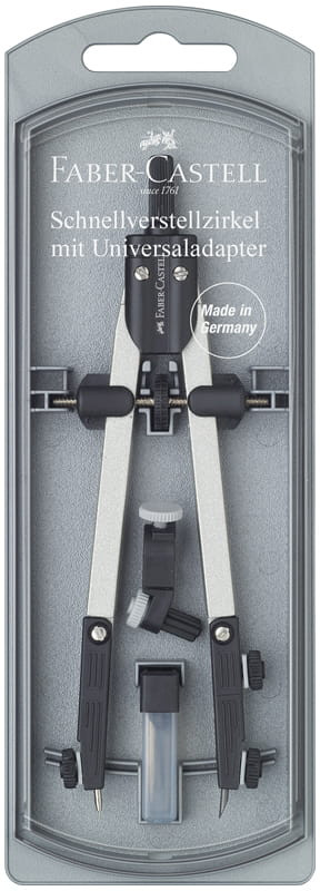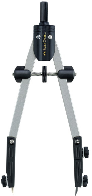 Надежный циркуль от легендарного немецкого производителя Faber-Castell. Прочные зубчатые колесики, легко регулируемые ножки, а также нескользящие иглы и свинцовые зажимы для создания точных линий, являются стандартными характеристиками всех циркулей Faber-Castell. Регулировочный механизм позволяет чертить окружности диаметром до Ø 340 мм. Грифели идут в комплекте с циркулем.