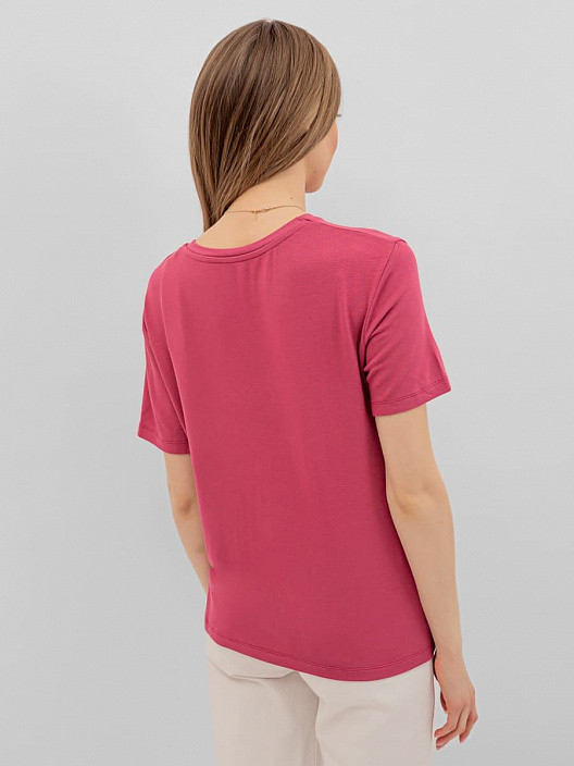 Очень качественный трикотаж и пошив, х/б. Цвет, как на фото, очень понравилась. По размеру - большемерит на 2 размера примерно, на ОБ 104 и ОГ 96 хорошо подошел 44 размер, не в обтяжку.