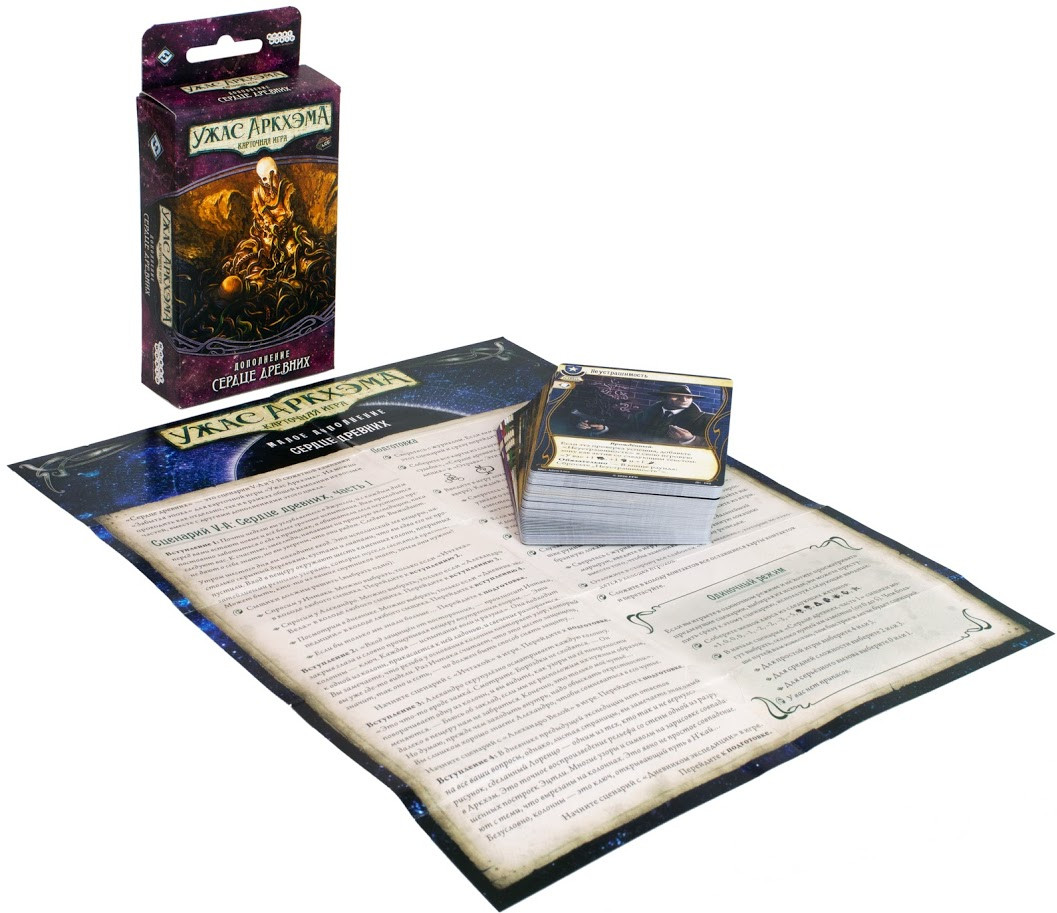 Внимание! Это дополнение. Для игры вам понадобятся: базовая версия «Ужас Аркхэма. Карточная игра» и большое дополнение «Забытая Эпоха».