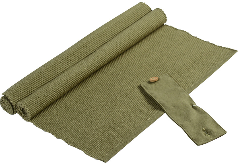 Комплект из двух салфеток под приборы выполнен из прочного длинноволокнистого хлопка. Такой материал хорошо впитывает влагу, не электризуется и выглядит новым даже после множества стирок. Набор представлен в насыщенном оливковом оттенке.