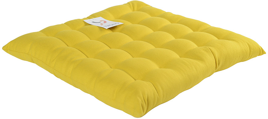Дополню описание с этикетки: ручная стирка. Запрещено: гладить, отбеливать, а также сухая чистка и барабанная сушка. Однако, фактические размеры не 40 х 40, а 37 х 37 (с натяжкой 37,5х37,5). Высота кубиков 3 см, в сжатом состоянии 1,5-2 см. На жёстком стуле самое то.