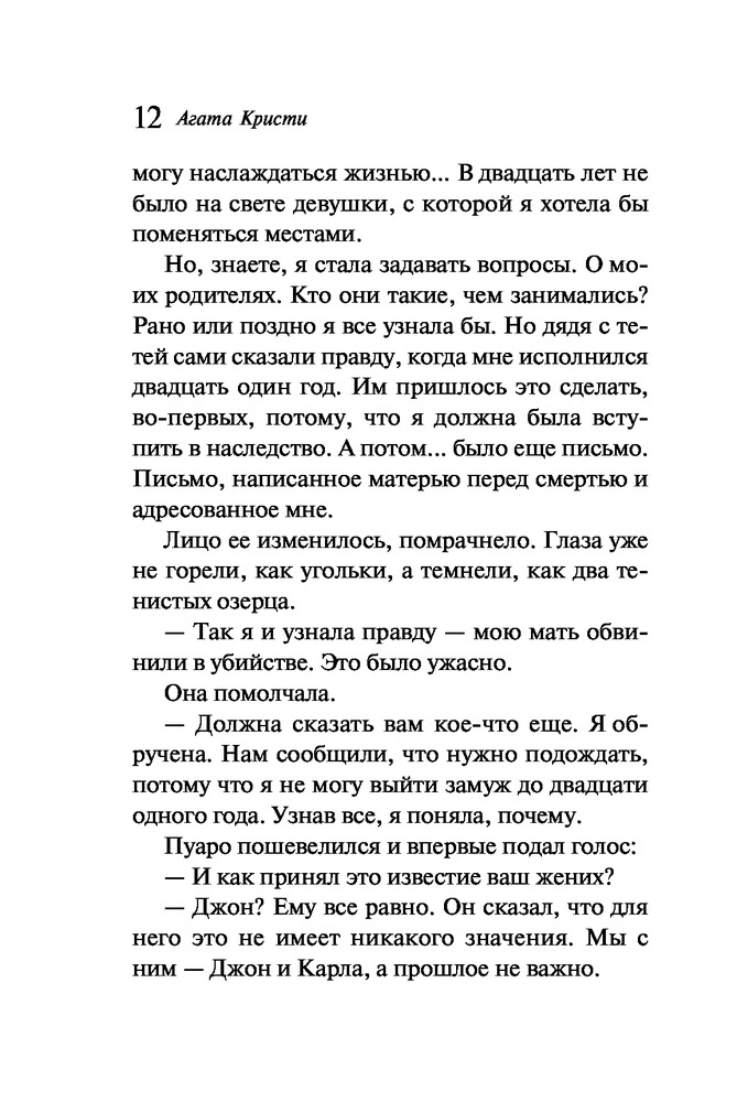 оцениваю её на 9/10. Почему 9/10? Всё было предсказуемо с самого начала. Сама идея книги мне по душе, но меня раздражало как снова и снова повторялось одно и то же... тут же Пуаро должен был разгадать убийство 16 летней давности, согласитесь интересно? Убийцу я отгадала ещё в начальных главах, если прочитать несколько книг Агаты то можно понять кто здесь убийца. Тем не менее в последних главах было столько вопросов, что из-за этого ты начинаешь сомневаться в своих догадках) больше всего из персонажей мне понравилась гувернантка, так как она была феминисткой, она дала кучу правильных мыслей насчёт убитого. Однозначно советую, не зря она считаться одной из лучших.