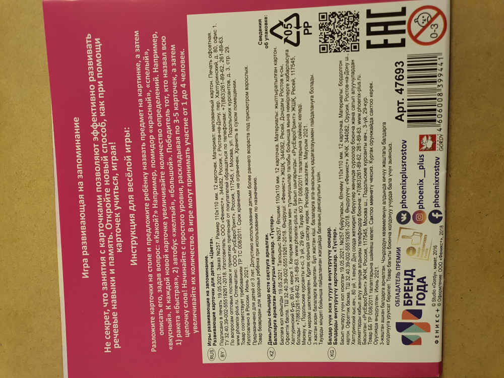 Феникс + Цвет. Развивающие карточкиВ данный момент этот товар отсутствует в продаже. Возможно, у нас найдется аналогичный или похожий товар здесь. Серия: Развивающие карточки Серия «Развивающие карточки» для детей от трех лет — набор из 12 карточек с красочными картинками, который предназначен для разностороннего развития ребенка и составлены с учетом психологических особенностей восприятия и мышления малыша. Занятия с карточками развивают у ребёнка интеллект, зрительную память, помогают научиться быстро запоминать названия предметов и написание слов. Развиваем речь, память, внимание, воображение и творческие способности. |