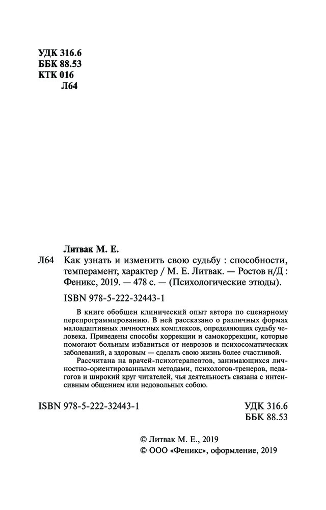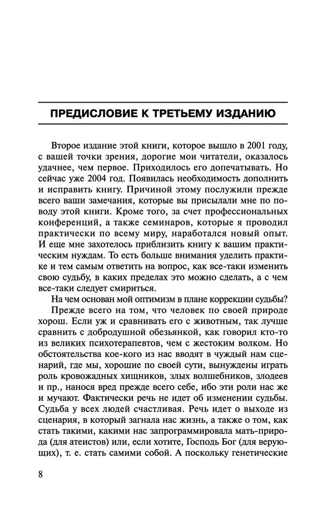 Серия: Психологические этюды В книге обобщен клинический опыт автора по сценарному перепрограммированию. В ней рассказано о различных формах малоадаптивных личностных комплексов, определяющих судьбу человека. Приведены способы коррекции и самокоррекции, которые помогают больным избавиться от неврозов и психосоматических заболеваний, а здоровым сделать свою жизнь более счастливой.   |