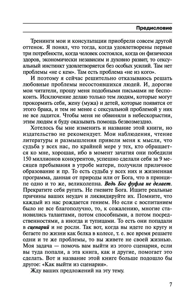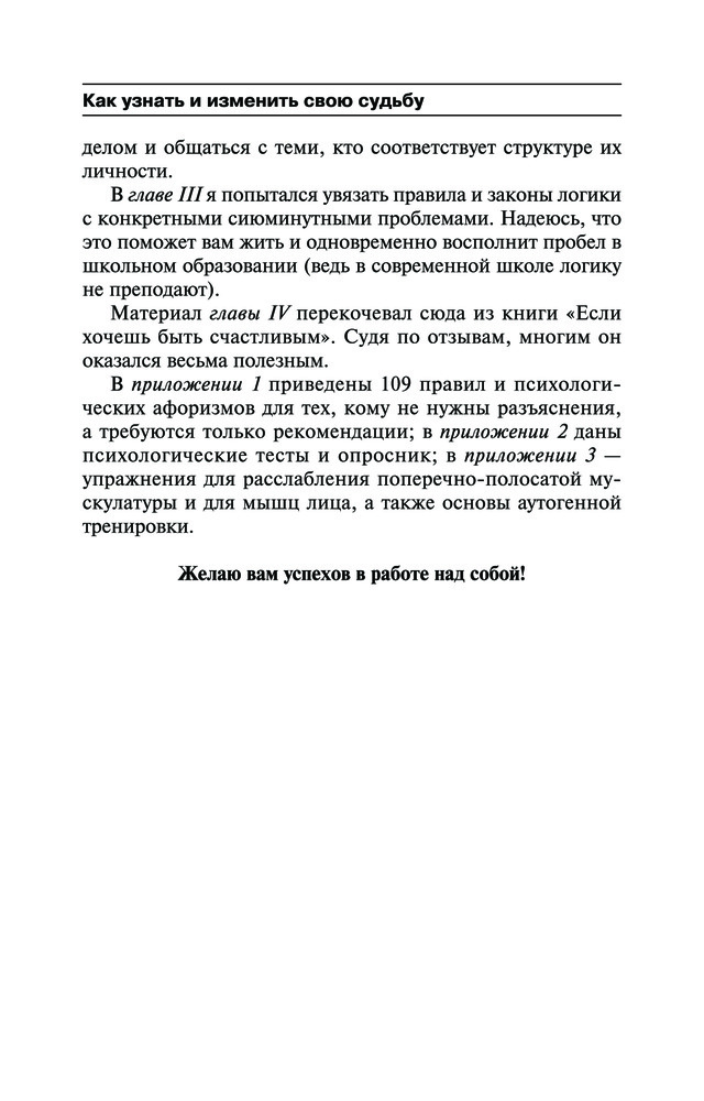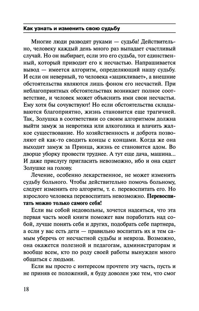 Я пока ещё читаю книгу. Она не о судьбе, а о сценариях, в которых мы существуем (даже не подозревая об этом). Самое главное, Михаил говорит: «мы рождены принцами и принцессами, чтобы стать королями и королевами, но в процессе жизни нас превратили в лягушек…» — и эти слова действительно отражают всю книгу. Думаю, эта книга нам может помочь в изучении себя😊Рекомендую!