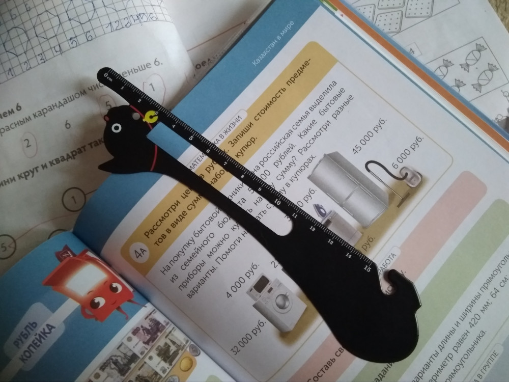 Суперская закладка - "поселили" ее в учебнике математики. Здорово, на уроке всегда под рукой линейка!