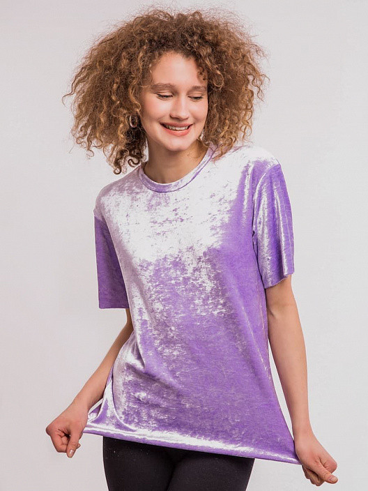 Футболка отличная! Приятная на ощупь, велюровая, фасон как на фото. Размер L на 48-50 сел отлично, свободно.