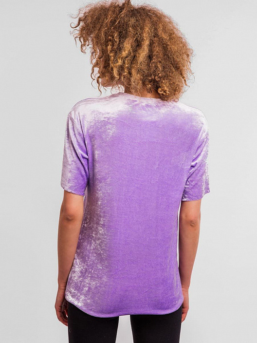 края рукавов и низ футболки не подвернули, не прошили из этого при носке скатывается в горизонтальную колбаску. не удобно. а материал велюр не плохой, не сыпится.