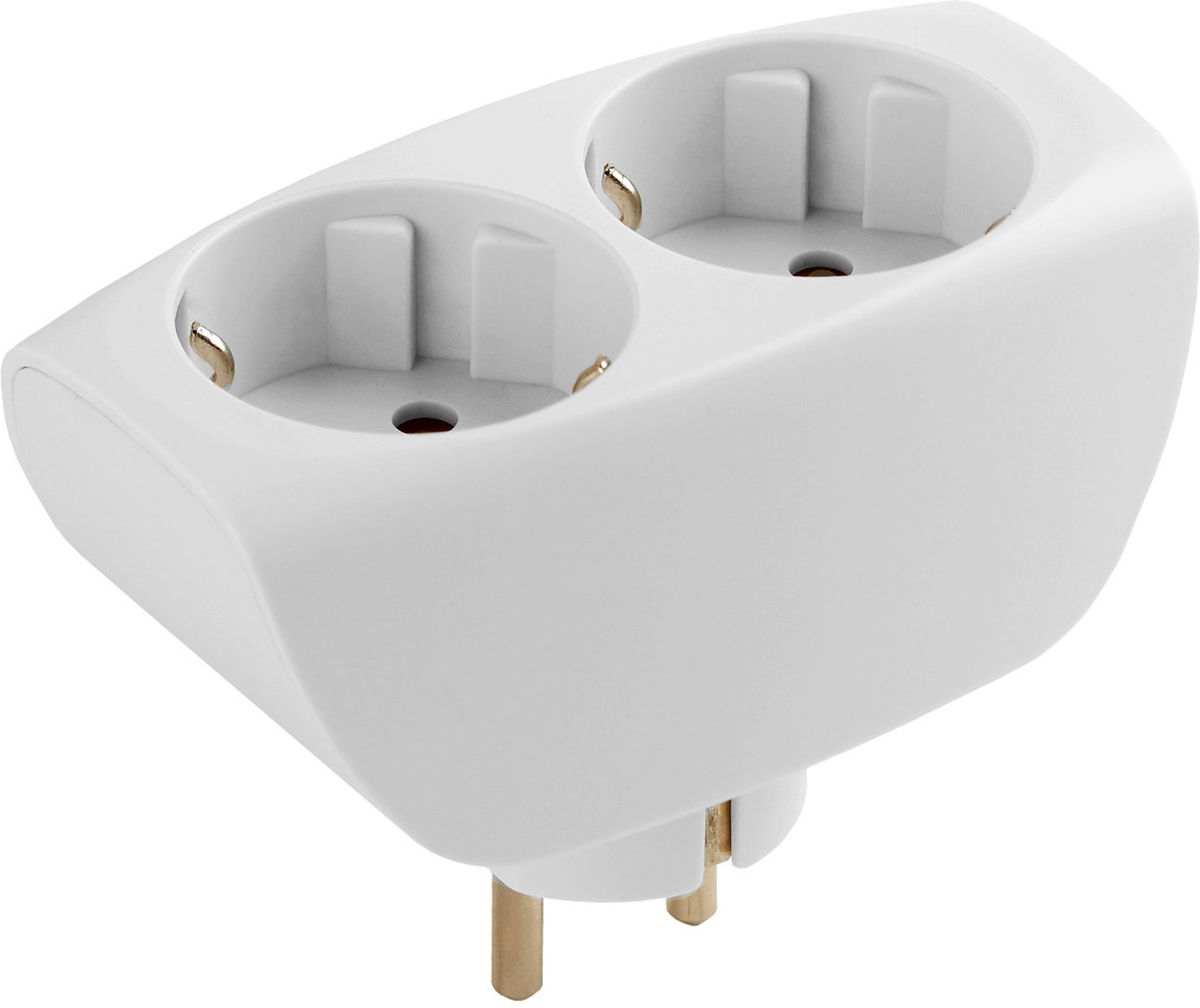 Слишком широкий. Перекрывает часть второй розетки при использовании со сдвоенный розеткой. Из-за этого приходится использовать только плоский штекер во второй розетке.