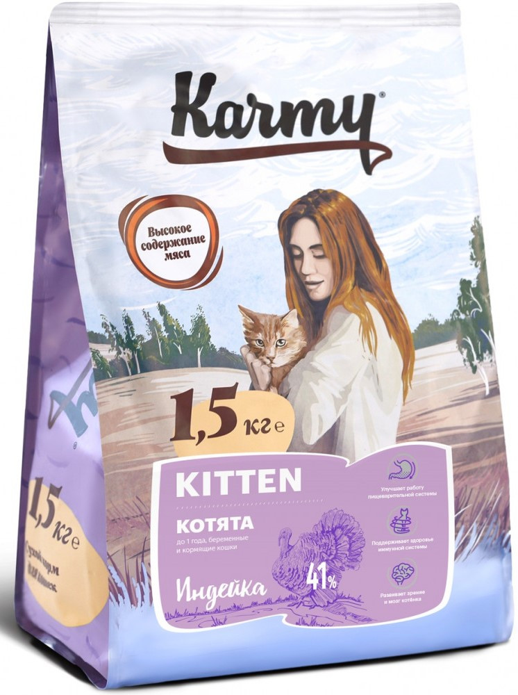 Karmy Корм для беременных и кормящих кошек и котят в возрасте до 1 года с индейкой «Kitten»