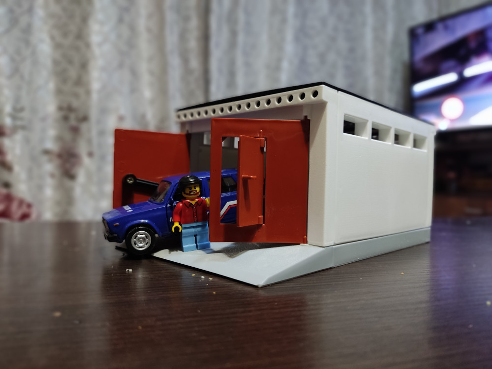 гараж сделан аккуратно, ничего лишнего, прямо как настоящий в миниатюре