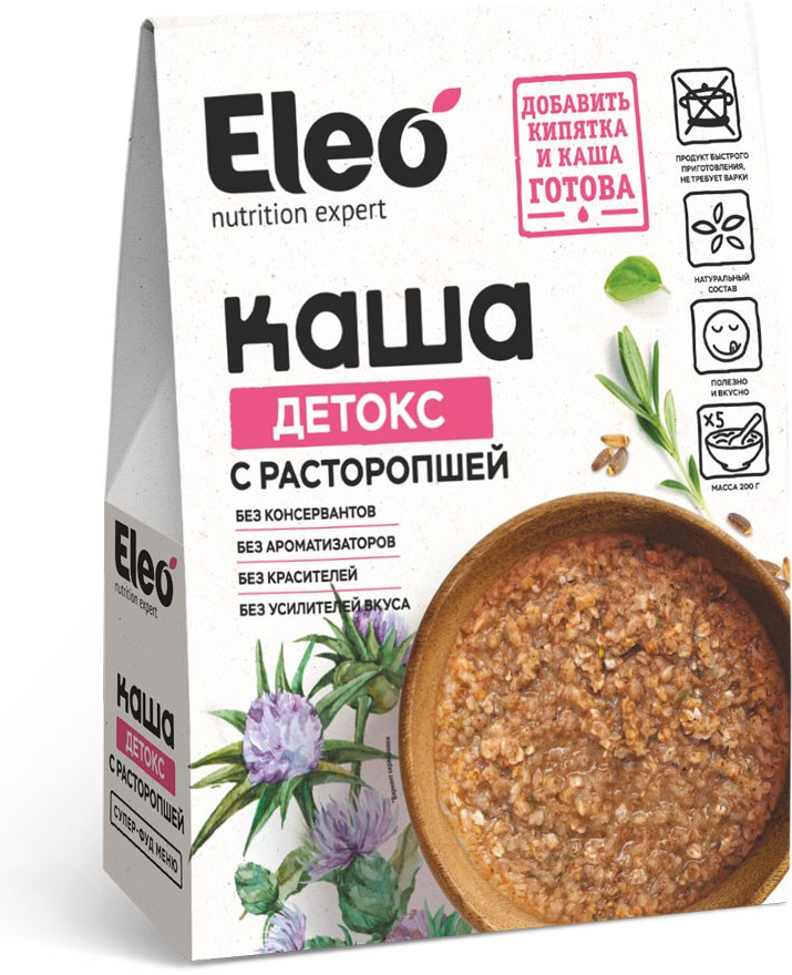 в коробке 5 пакетиков перемолотой расторопши. Добавляю в кашу по по 1 ложке, по утрам,придает ореховый вкус