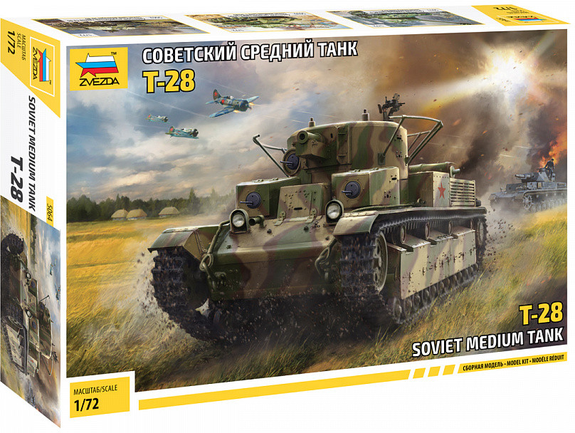 Т-28 — советский трёхбашенный средний танк, разработанный и запущенный в серию в довоенный период, принимавший участие в активных боевых действиях ряда локальных войн и начального этапа Великой Отечественной войны. Танк Т-28 был принят на вооружение Красной Армии в августе 1933 года и выпускался на Кировском заводе в Ленинграде до 1940 года. Особенностью Т-28 являлось наличие трёх вращающихся башен с вооружением. Несмотря на относительно большой вес, танк имел хорошую проходимость. Трофейные Т-28 использовались войсками Финляндии, на вооружении которых эти танки оставались до 1951 года. |