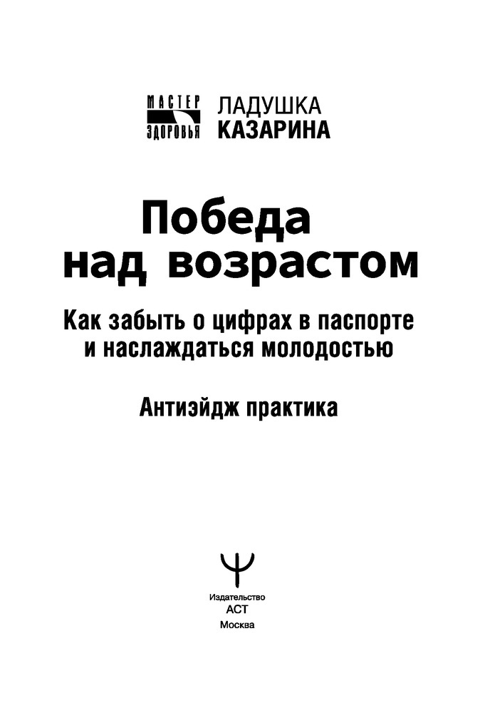 Победа над возрастом. Как забыть о цифрах в паспорте и наслаждаться молодостью. Антиэйдж практикаВ данный момент этот товар отсутствует в продаже. Возможно, у нас найдется аналогичный или похожий товар здесь. Серия: Мастер здоровья Женщина в любом возрасте может выглядеть свежо и молодо — на собственном примере доказывает автор этой книги и известный антиэйдж-блогер Эллада Казарина. Нет, для этого не нужно много денег. И генетика тут ни при чем. Ложиться под нож также не нужно. Молодость живет в голове, а ваш прекрасный внешний вид — лишь следствие правильных мыслей и действий. Эта книга даст вам все необходимые инструменты для того, чтобы сохранить или вернуть молодость как внешнюю, так и внутреннюю. Книга написана для того, чтобы женщины в любом возрасте были наполнены энергией, здоровы и прекрасны, как в 25, так и в 50+ лет. |