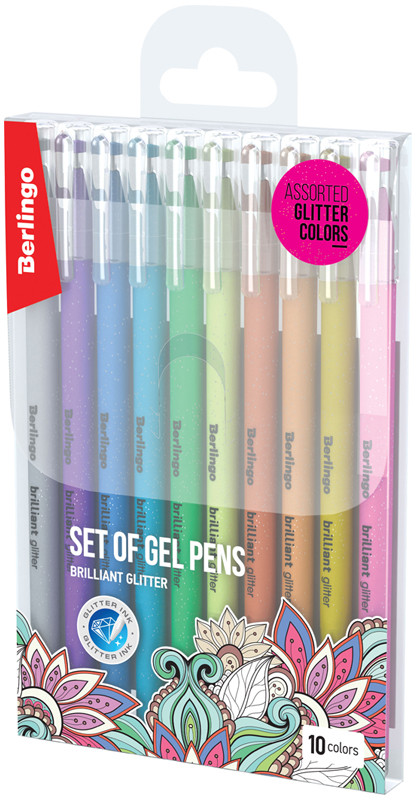 Berlingo Набор гелевых ручек «Brilliant Glitter»-20% +34 бархатистый корпус глиттерное напыление мерцающие чернила не полосит