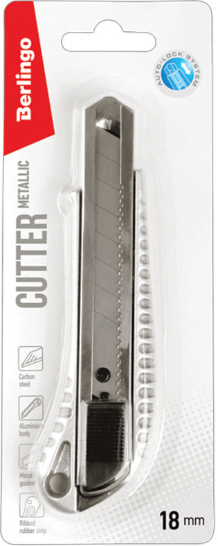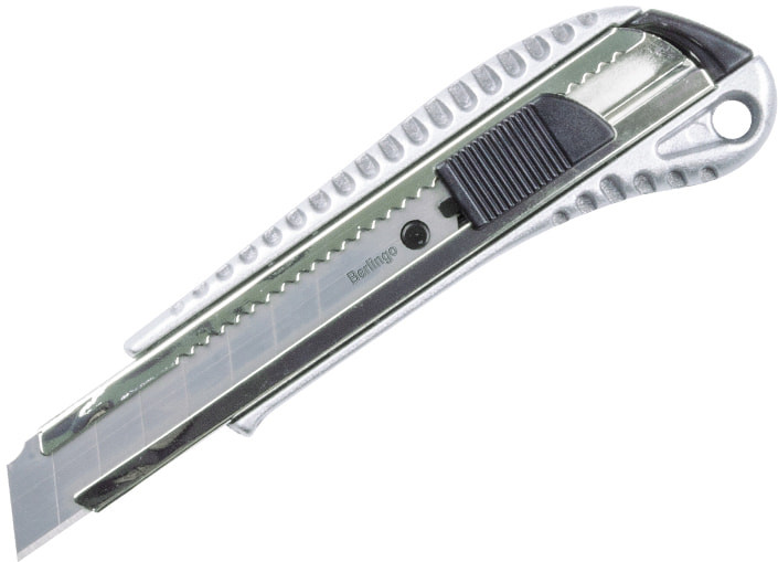 Berlingo Нож канцелярскийВ данный момент этот товар отсутствует в продаже. Возможно, у нас найдется аналогичный или похожий товар здесь. Серия: Metallic Алюминиевый корпус с противоскользящей резиновой накладкой на рукоятке. Стальное лезвие двигается по металлическим направляющим. Автоматическая фиксация лезвия Auto-Lock. На рукоятке съёмная деталь с прорезью для безопасного отламывания затупившейся части. |