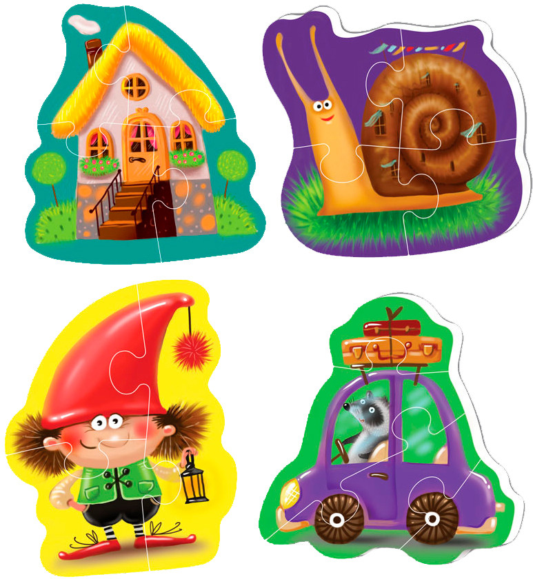 Беби-пазлы — это первые пазлы для самых маленьких. В наборе — четыре картинки с разным количеством деталей (три, четыре и пять). Малыш может начать с простого задания, а потом перейти к пазлу с большим количеством деталей. Таким образом, он легко научится соединять части в целое по логическому принципу.