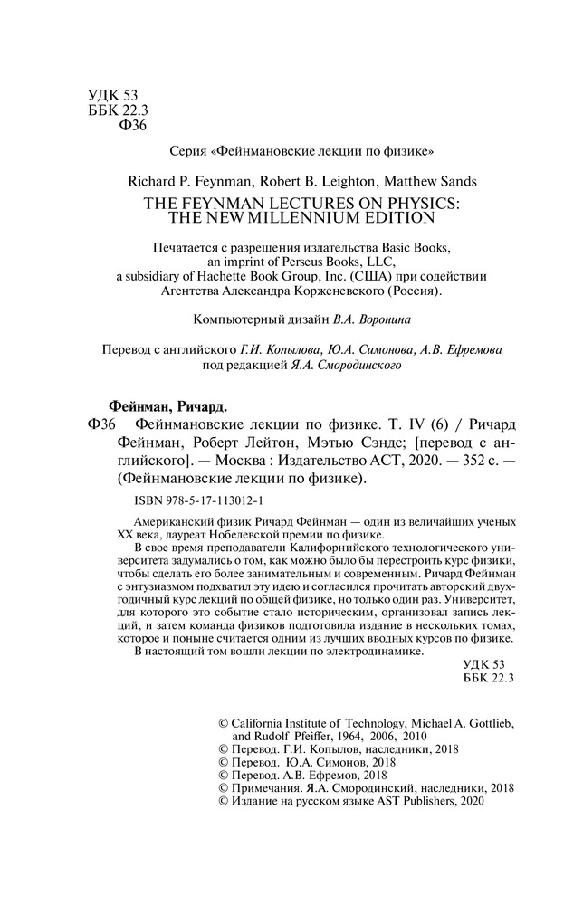 💳 Оплатить за товар можно при получении 🇰🇿 Есть бесплатная доставка по Казахстану от 1 дня 🎁 Копите бонусы с каждой покупки Серия: Фейнмановские лекции по физике В свое время преподаватели Калифорнийского технологического университета задумались о том, как можно было бы перестроить курс физики, чтобы сделать его более занимательным и современным. Ричард Фейнман с энтузиазмом подхватил эту идею и согласился прочитать авторский двухгодичный курс лекций по общей физике, но только один раз. Университет, для которого это событие стало историческим, организовал запись лекций, и затем команда физиков подготовила издание в нескольких томах, которое и поныне считается одним из лучших вводных курсов по физике. В настоящий том вошли лекции по электродинамике |