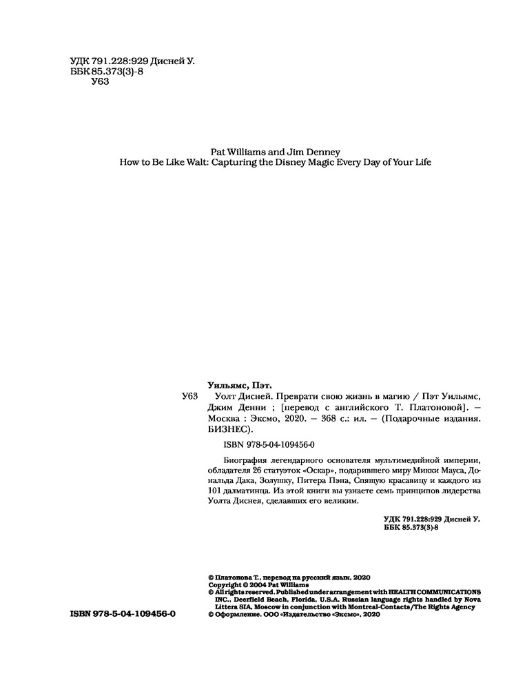 Уолт Дисней. Преврати свою жизнь в магиюВ данный момент этот товар отсутствует в продаже. Возможно, у нас найдется аналогичный или похожий товар здесь. Серия: Подарочные издания. Бизнес Биография легендарного основателя мультимедийной империи, обладателя 26 статуэток «Оскар», подарившего миру Микки Мауса, Дональда Дака, Золушку, Питера Пэна, Спящую красавицу и каждого из 101 далматинца. Из этой книги вы узнаете семь принципов лидерства Уолта Диснея, сделавших его великим. |