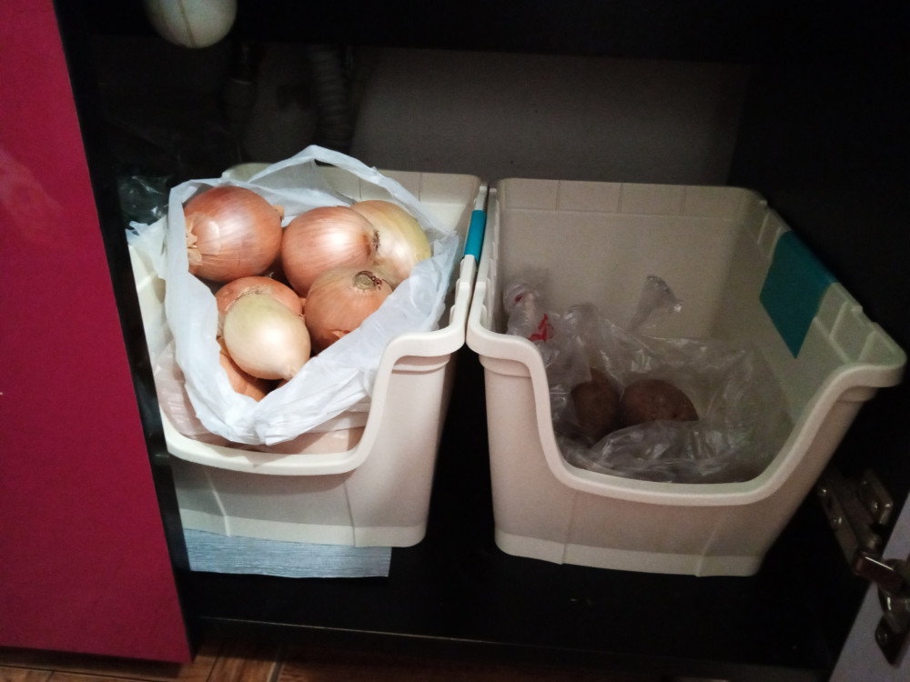 Отличные корзины, вместительные, прочный пластик. Есть удобное окошко, чтобы доставать, что внутри. Приспособила под овощи, убрала ножки, чтобы не занимали место.