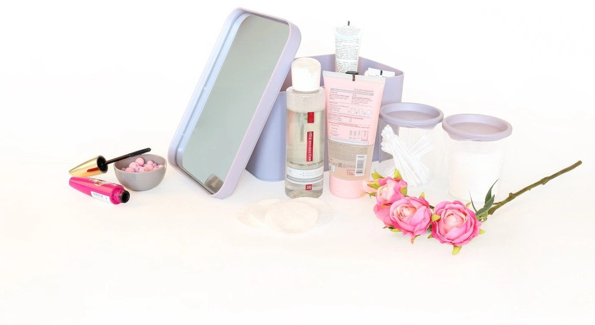 Вместительный органайзер. Самое то для хранения косметики. Баночки для ватных палочек и дисков вмещают немного, но удобно хранить. Плюс зеркало на крышке, думала не пригодится, но периодически пользуюсь.