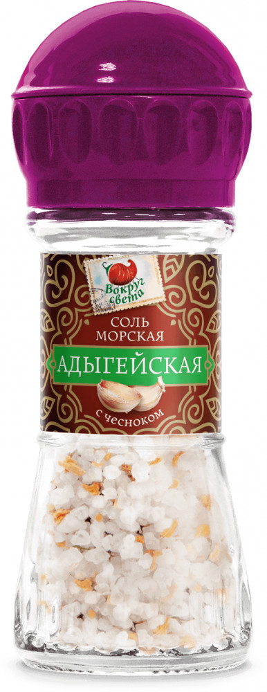 Вокруг света Соль морская с чесноком «Адыгейская»+38 вкусная ароматная универсальная плохо перемалывает