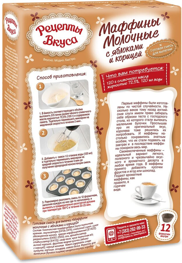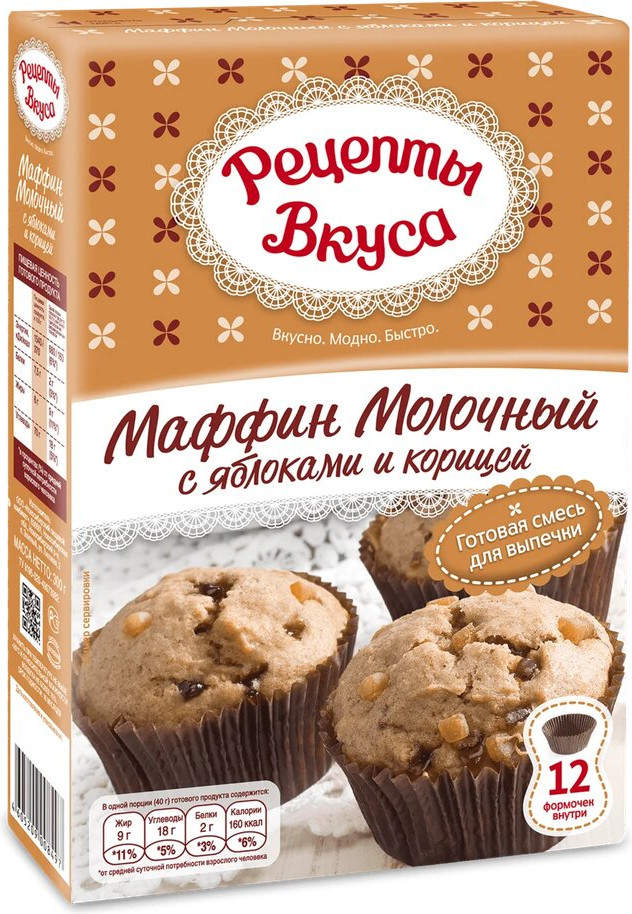 Рецепты Вкуса Смесь «Маффины молочные с яблоками и корицей»