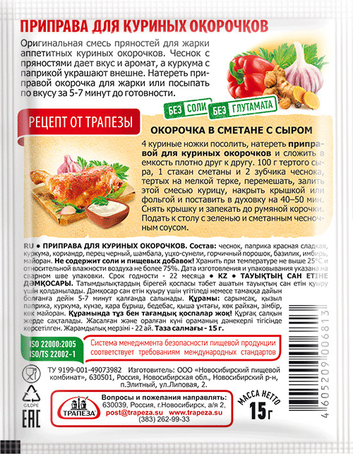 Трапеза Приправа для окорочковВ данный момент этот товар отсутствует в продаже. Возможно, у нас найдется аналогичный или похожий товар здесь. Оригинальная смесь пряностей для приготовления куриных окорочков. Аппетитная хрустящая корочка или наваристая подливка вкуснее с приправой для окорочков. |