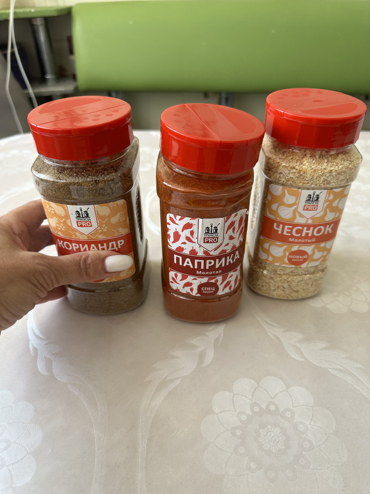 отличный товар , взяла почти всю линейку приправ , кориандр , паприку , сушеный лук , сушёный чеснок , хмели -сунели, черный перец ... все соответствует описанию , качество 100% .