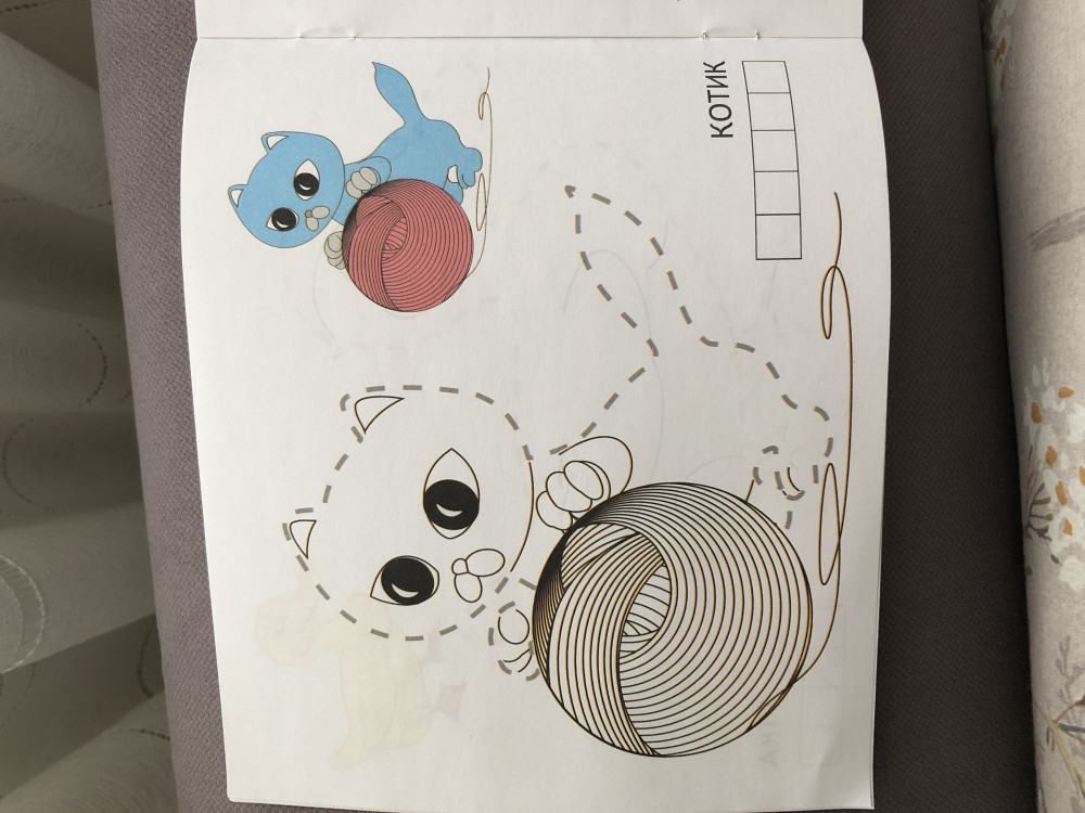 Отличное пособие! И Раскраска, и развитие моторики, и прописать нужно слова в клеточках! Занятно! Бумага тонкая, но и цена у нее 100 тг. Рекомендую!