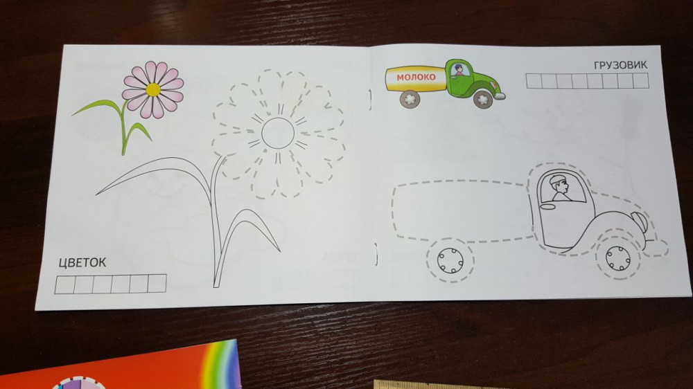 Отличное пособие! И Раскраска, и развитие моторики, и прописать нужно слова в клеточках! Занятно! Бумага тонкая, но и цена у нее 100 тг. Рекомендую!
