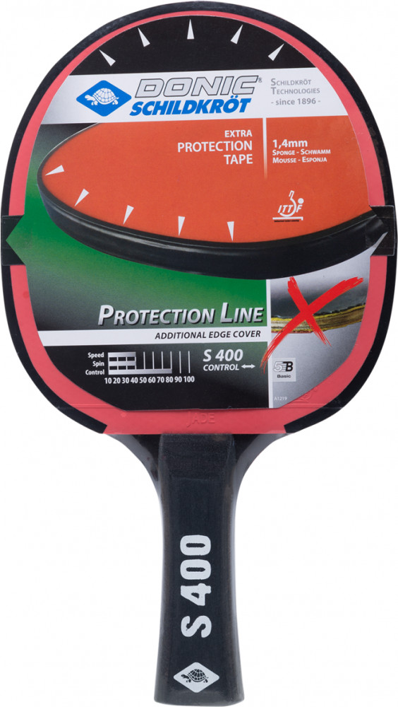 Ракетка ProtectionLineLevel 400 от всемирно известного немецкого бренда Donic-Schildkröt является одной из самых интересных разработок за последнее время в мире настольного тенниса. Кромочная лента защищает дерево и резину от повреждений, что значительно увеличивает срок службы ракетки. Высокий показатель контроля гарантирует уверенную игру для новичка.