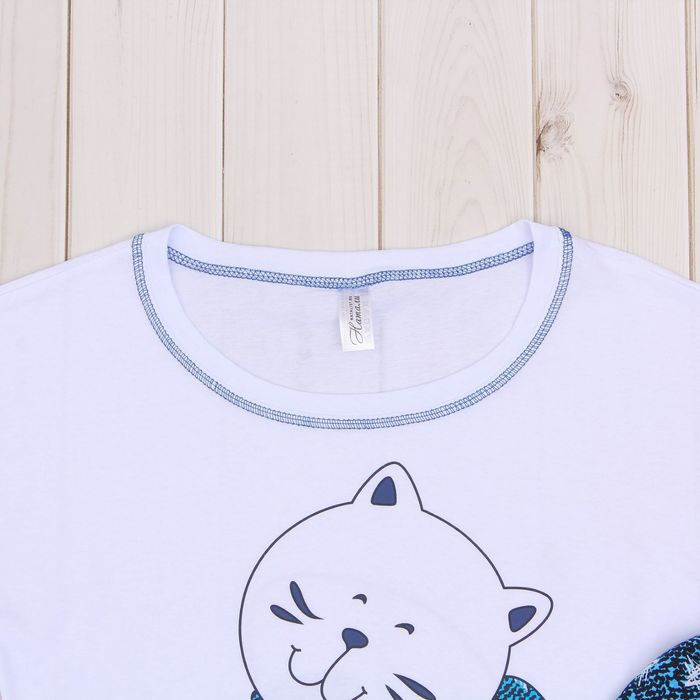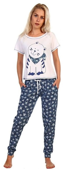 отличный костюм! взяла46р, тк 48 не было и к моей радости совсем не малой ,майка свободная,не коротка,штаны тоже не в обтяжку,ткань хлопчатобумажный трикотаж. рисунок котика очень миленький,майку можно носить на улицу с джинсами .штаны длинные внизу манжеты ,есть карманы.Рекомендую к покупке!