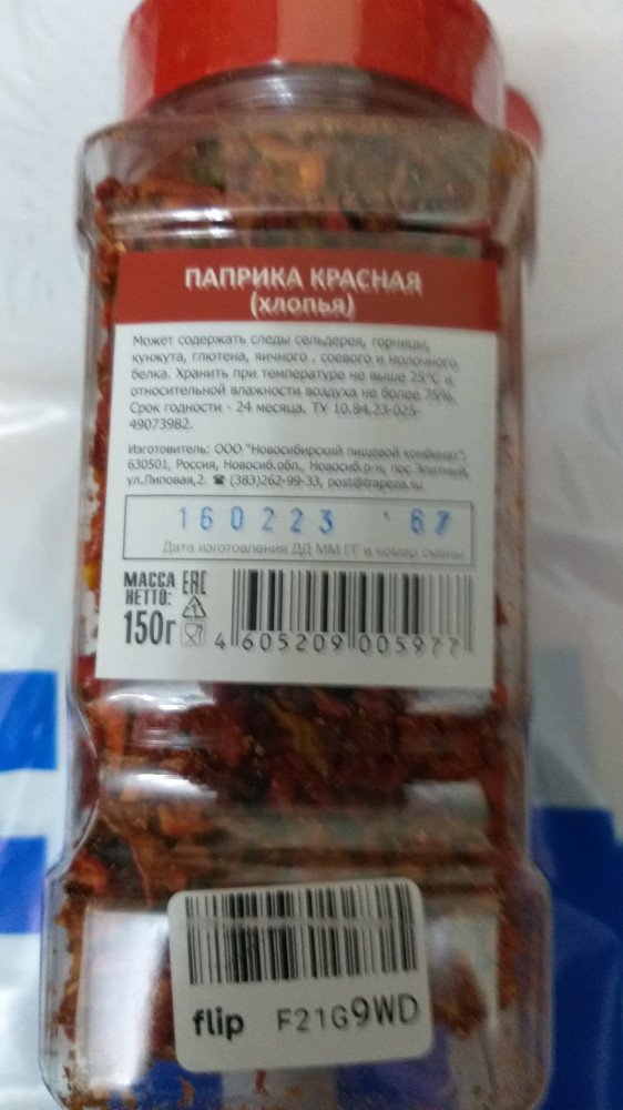 я недовольна составом банок паприки красной (хлопья) - не полная, объем 2/3 банки.