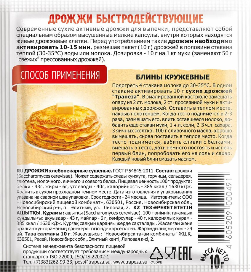 Трапеза Дрожжи быстродействующиеВ данный момент этот товар отсутствует в продаже. Возможно, у нас найдется аналогичный или похожий товар здесь. Дрожжи используют для получения дрожжевого (кислого) теста и придания ему пористой структуры за счет образующегося углекислого газа, который разрыхляет его и увеличивает объем. Сухие дрожжи представляют собой капсулы, внутри которых находятся живые дрожжевые клетки. |