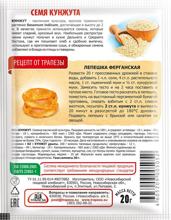 💳 Оплатить за товар можно при получении 🇰🇿 Есть бесплатная доставка по Казахстану от 1 дня 🎁 Копите бонусы с каждой покупки В качестве пряности используются семена кунжута, которые имеют сладкий, ореховый вкус. Наибольшее распространение кунжут получил в кухне Дальнего и Среднего Востока, где им посыпают хлеб и сдобную выпечку, используют в приготовлении суши, а обжаренные семена добавляют в блюда из птицы и говядины. |