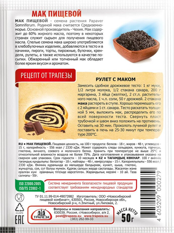 Трапеза Мак пищевой+21 чистота без пыли объем