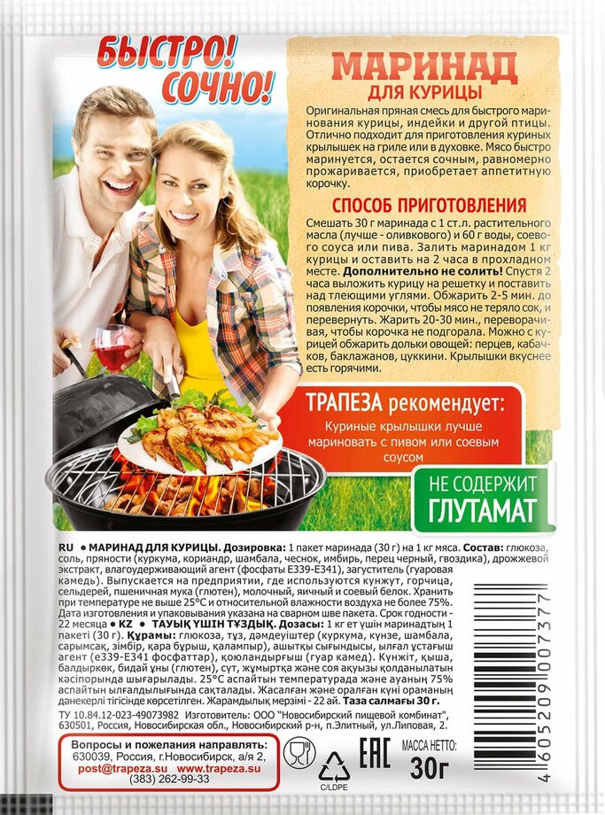 Трапеза Маринад для курицы+11 приятный вкус сочность хороший маринад повторная покупка
