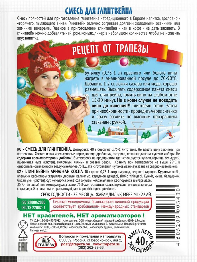 Трапеза Смесь для глинтвейна+15 приятный вкус хорошее качество удобная упаковка универсальность