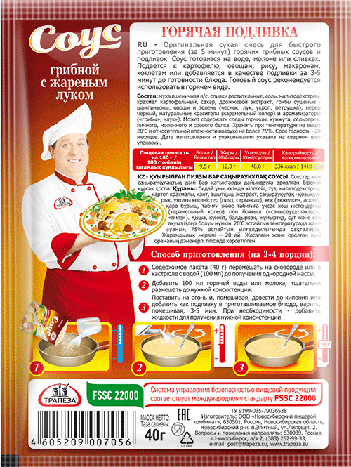 Трапеза Соус грибной с жареным луком+13 вкус густота аромат требует разбавления универсальность