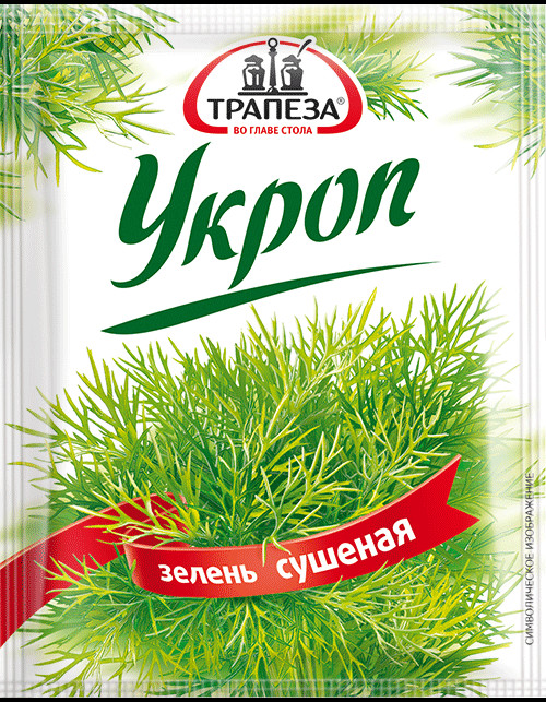 В зелени укропа содержится очень большое количество полезных компонентов. Это — витамин C, каротин, витамин В, никотиновая и фолиевая кислоты, а также многие ценные микроэлементы, такие как железо, фосфор, соли кальция, калий. Зелень укропа можно вводить в блюдо в сочетании с другой зеленью, например с зеленью петрушки, кинзы. Укроп придает блюду приятный аромат, витаминизирует его и улучшает внешний вид. Дозировка – по вкусу.