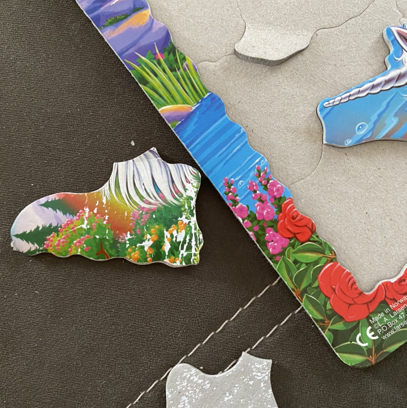 Соберите пазл «Единороги» от норвежского бренда Larsen и откройте для себя волшебное королевство. На собранной картинке малыш найдет замок у подножья гор, прекрасную природу окрестной долины и, конечно, главных героев — семейство сказочных единорогов. |