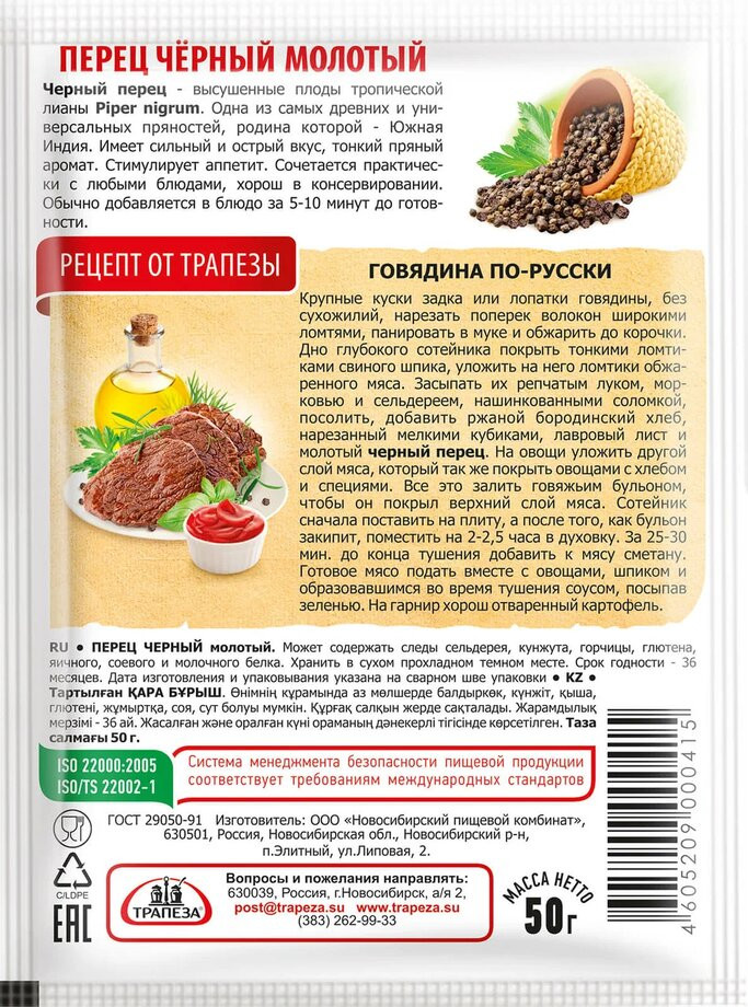 Трапеза Перец черный молотый