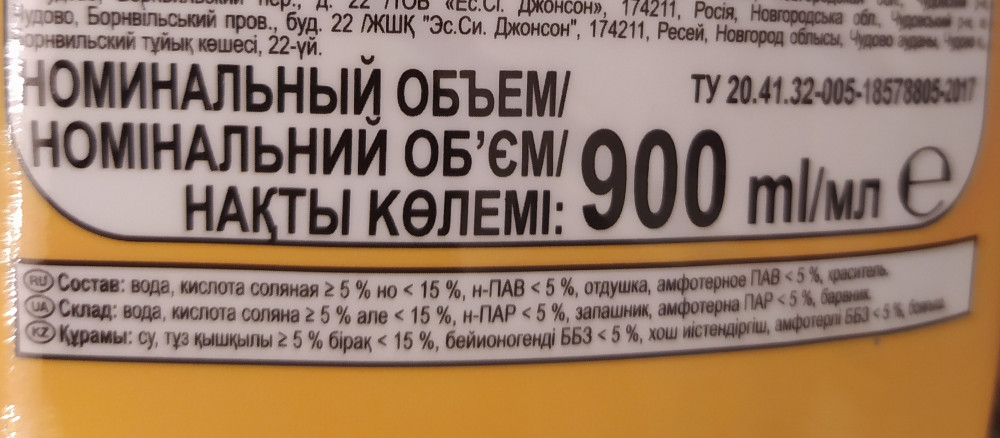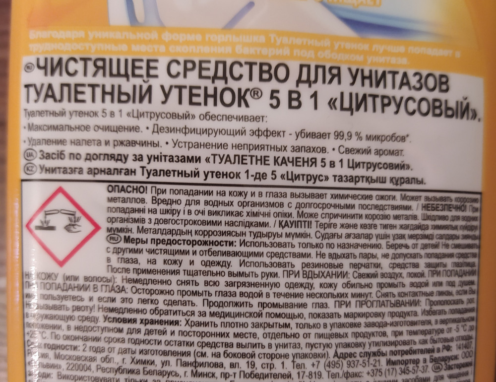 Чистит хорошо, резковатый запах, видимо из-за наличия в составе соляной кислоты.