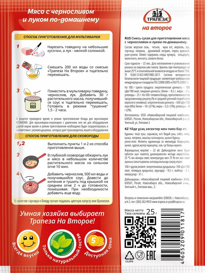 Трапеза Смесь «Мясо с черносливом и луком по-домашнему»+10 вкус чернослив для мяса приправа