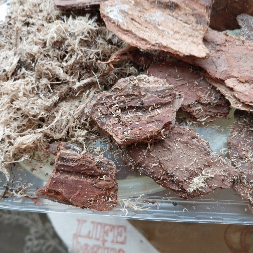 Очень крупная кора, 5 см каждый кусочек, мха щепотка …я еще думала купить отдельно, но прочитала что она есть в составе… Я в ужасе от качества товара..пришлось резать кору…