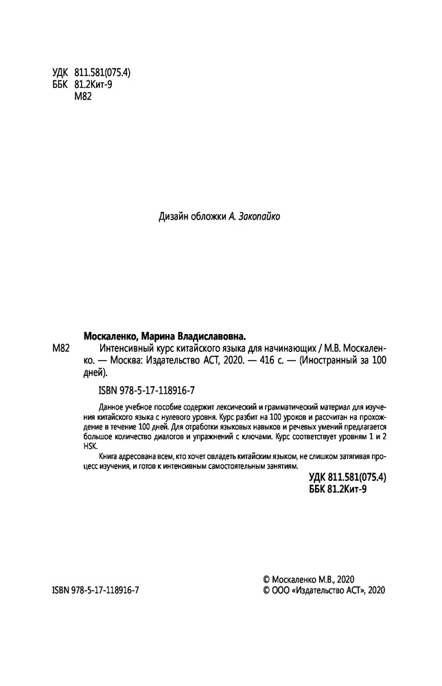 💳 Оплатить за товар можно при получении 🇰🇿 Есть бесплатная доставка по Казахстану от 1 дня 🎁 Копите бонусы с каждой покупки Серия: Иностранный за 100 дней Данное учебное пособие содержит лексический и грамматический материал для изучения китайского языка с нулевого уровня. Курс разбит на 100 уроков и рассчитан на прохождение в течение 100 дней. Для отработки языковых навыков и речевых умений предлагается большое количество диалогов и упражнений с ключами. Курс соответствует уровням 1 и 2 HSK. Книга адресована всем, кто хочет овладеть китайским языком, не слишком затягивая процесс изучения, и готов к интенсивным самостоятельным занятиям. |